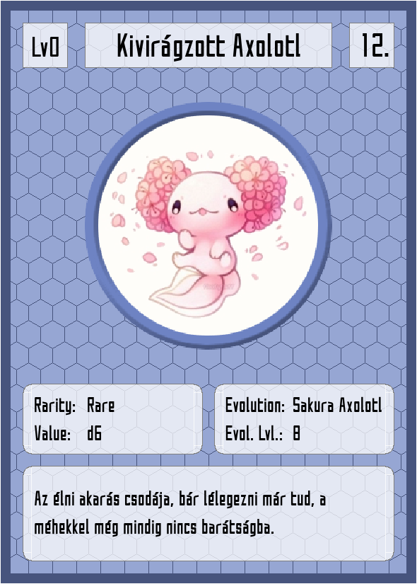 | #11 - Bébi Axolotl | #12 - Kivirágzott Axolotl | #13 - Sakura Axolotl | #14 - Bunnaery | #15 - ??? | |